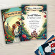 This elegant fairytale-style birthday invitation is perfect for a modern birthday. The retro design features a vintage enchanted forest, a castle illustration, and black calligraphy on a storybook-themed background.