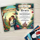 This elegant fairytale-style wedding enclosure card is perfect for a modern wedding. The retro design features a vintage enchanted forest, a castle illustration, and black calligraphy on a storybook-themed background.