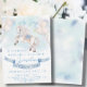 Horse-themed birthday invitation featuring illustration of a lovely baby white magic horse and Watercolor fairytale gold stars with pastel colours balloons and blue ribbon for celebration!