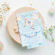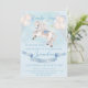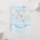 Horse-themed birthday invitation featuring illustration of a lovely baby white magic horse and Watercolor fairytale gold stars with pastel colours balloons and blue ribbon for celebration!