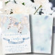 Horse-themed birthday invitation featuring illustration of a lovely baby white magic horse and Watercolor fairytale gold stars with pastel colours balloons and blue ribbon for celebration!