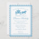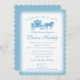 Fairytale carriage and horse, blue baby shower invitation with polka-dots on back for your little prince. Personalise as preferred.