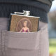 Well made flask, a little better than I had expected. Flask came in clear plastic box which gave it a nice presentation when I took it out of the zazzle packaging. Image is not printed on flask but on sticker. Don't know how this will hold up I haven't used it yet. This would make a Great gift! I plan to purchase more for friends! Cheers. I thought a little brighter than computer. Very crisp, writing wasn't