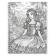 Notebook with a colouring page on the front in a fairytale theme with princess and castles.
