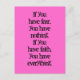 This is just a thought that came to my mind. "If you have fear, you have nothing. If you have faith, you have everything". This, in black lettering on a girly hot pink postcard. (c) LR