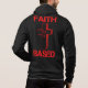 This men's hoodie has a design that features the words "Faith Based" in a bold print font with red letters plus cross with a heart in the centre in this faith based biblical quote theme. This hoodie is incredibly soft and relaxed spun from a plush poly-cotton blend great for everyday wear has a large matching image on the back.