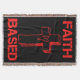 This throw blanket has a design that features the words "Faith Based" in a bold print font with red letters plus cross with a heart in the centre in this faith based biblical quote theme. This Blanket is made with from 75% cotton and 25% polyester with a very soft feel hand washing recommend.