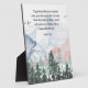 Bible verse art sign with stand features the scripture passage from Matthew 17:20 printed above a beautiful mountain landscape scene. Home decor sign is a lovely way to display God's word in your home. Bible verse reads: "If you have faith as a mustard seed, you will say to this mountain, ‘Move from here to there,’ and it will move; and nothing will be impossible for you." From Matthew 17:20. Sign makes a lovely wedding gift, housewarming gift, or all occasion gift for Christian friends.