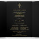 Celebrate a wedding filled with faith and elegance with this exquisite contemporary invitation design. The deep black background adds a modern and distinguished presence, while the text and decorative accents in faux gold create a luminous and sophisticated contrast that evokes the warmth and solemnity of sacred love. On the cover, a delicate golden cross symbolizes spiritual union — ideal for both Christian and Catholic ceremonies that wish to reflect devotion and style in equal measure.
