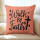 Make a bold statement of your faith with this simple but powerful message of "Walk By Faith". The design on this throw pillow features a black cross, flowers, and hearts, against a blush pink background. This would be a perfect gift for a birthday, Mother's Day or Christmas for that special person of faith in your life.