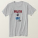 This shirt sports the three Fs that carry freedom. Faith, Family, Firearms. To top it off this design is sold on a shirt made in the USA! (Fun Fact: The silhouette was designed from a picture of Alec Pavlik, the writer of Militia Of One).