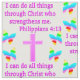 Show you love of Jesus and believing in miracles with this pretty pink cross and butterfly Philippians 4:13 design. I can do all things through Christ who strengthens me. This inspiring Philippians 4:13 design will make a treasured gift when blessing that someone special that loves Jesus and reading the bible. This joyous Philippians 4:13 scripture verse design will look lovely wearing on a Tee or decorating your home with one of our charming home decor products. Share with all that Jesus Christ is the Lord of your heart and the keeper of your soul. Enjoy this delightful rainbow butterfly and cross design that is peaceful, spirit filled, and serene. What an encouraging way to share the love of Jesus Christ.