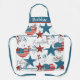 Apron features patriotic stars, hearts and confetti in the colours of the American flag with a vintage retro feel.  The words Freedom, Faith and Liberty are scattered randomly in the design. Personalise by adding your name.