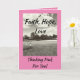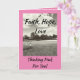Express your sincere wishes to a breast cancer survivor with a "Faith, hope, love" message. The bold black and grey card with a "thinking pink" theme has an inspirational image of a child flying a kite on a sunny day. The positive verse of "never ever say never" on the inside will send your supportive and caring thoughts.
