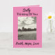 Express your sincere wishes to a breast cancer survivor with a "faith, hope, love" message of hope. The bold black and grey card with pops of pink has an inspirational image of a child flying a kite on a sunny day. The positive verse of "thinking pink" on the inside will send your supportive and caring thoughts.