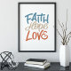 Make a statement with this beautiful "Faith Hope Love" poster,. This poster features a stunning brush calligraphy design, expressively crafted with care and attention to detail. The message, "Faith Hope Love," is a timeless reminder of faith based values that truly matter.