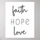 This design is composed of the phrase "Faith Hope Love" which is a typography poster wall art that features a clean and modern design that is perfect for brightening up and adding some personality to any space. This lovely print can be personalised further by adding your own custom text, as well as changing the colours. This design has a modern feel and would look great in a modern apartment or loft space.