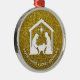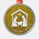 Celebrate the true meaning of Christmas with this elegant Christian nativity Christmas Metal Ornament with CUSTOMIZABLE text. Featuring a beautiful silhouette of the Nativity scene with shimmering gold tones, this Ornament is the perfect way to share faith, hope, and love with family and friends this holiday season.