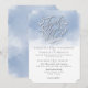 Check out these ethereal 'Heaven Sent' wedding invitations. These invitations feature a watercolor parting of clouds illustrations. Fitting for a religious wedding celebration. Personalise this invite with your wedding events venue and dates. The bride and grooms name is featured in a clean and sleek font. The phrase ' Faith, Hope, Love' is featured on the top of the invitation in an italic script font with sweeping swirls framing the text. Set the tone of your wedding with these faith-based blue watercolor church invitations.