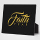 Visual wordplay text design with the first line in a strong beautiful font printed in bold above the second line of small wide-spaced letters. Keep the inspirational saying 'Faith Over Fear' for a gift of encouragement, or use the text template to create a new inspiring quote. Edit to change the gold text and black background to any colours you wish. ♡ Idyllfire