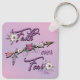 This is a Unique "One of a Kind" Faith Over Fear Keychain! It Features the Inspirational Christian Words "Faith Over Fear" in Purple and a Beautiful Boho Arrow Nestled Among Pretty Pink & Cream Flowers and Purple Feathers...on a Light Purple & Pink Background!