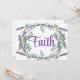 A romantic and elegant design with the word "faith" framed by eucalyptus and lavender painted in watercolor.