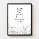 Inspirational bible verse "Faith is being sure of what we hope for and certain of what we do not see." from Hebrews 11:1 defines faith as a confident belief in the unseen promises of God. Design features elegant typography with delicate watercolor pastel wildflowers.