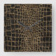 Fake Crocodile Black Liquid Marble and gold Square Wall Clock