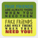 20 Stickers. Edited quote & Designed by Elizabeth Medina. TRUE FRIENDS ARE ALWAYS THERE WHEN YOU NEED THEM, FAKE FRIENDS ARE ALWAYS THERE WHEN THEY NEED YOU. Copyright. Match with other items.