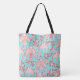 Falcons & Roses Elegant Illustrated Blue Pink Tote Bag
