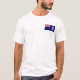 The front of this t-shirt bears a small Falklands flag with its familiar coat of arms set within the blue ensign, while the back displays a relief map of Falkland Islands. Available on t-shirts, sweatshirts, polos, long-sleeves and more.