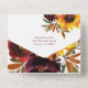 Fall in love with this unique all in one bridal shower invitation for the fall bride. The watercolor of deep red and golden yellow flowers really pop against the faded leaves. An Advice and Wishes card is attached and designed to be torn off and brought to the shower by each guest. This allows them time to write some really thoughtful advice before shower day. The invitation also includes areas for the return and recipient addresses. Your guests are sure to be wowed!