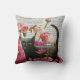 Fall Asleep to Dream Black Cat Hot Pink Flowers Cushion
