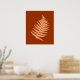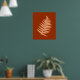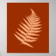A silhouette drawing of a fern leaf in fall in a light brown color with a dark reddish brown background.