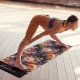 As a yoga mat, it is comfortable to use. I place a second mat under it for added comfort. But I mostly use this particular mat design for "Distance Reiki". (I am a graphic designer but I also do distance reiki work and needed something full size to work with my clients so I designed this for that purpose. The Chakras are highlighted and make it easy to place charkra stones over. I use a pendulum and tuning forks to balance the body's energy, and this helps me know, with greater detail, what part of the clients body I am connecting to when I feel fluctuations in the energy field. I am very pleased with how my design turned out. The background is very complex with color gradations and with text at the bottom. The text is readable and I am pleased with the detail in the graphics.