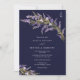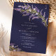 A chic Classic elegant floral lavender wedding watercolor with monogram initials featuring purple lavender botanical stems branches and flowers , green and brown foliage and elegant calligraphy on dark navy blue.