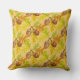 This throw pillow is shown in a autumn fall leaves acorn print with a light golden background colour.