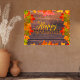 Personalised Thanksgiving poster design featuring autumnal maple leaves on a barn wood background. The text is fully customisable. To change it use the Personalise option. For more changes, such as changes to the font, font colour or text layout, use the Edit design tool option.