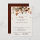 Elegant rustic country fall wedding RSVP card featuring brown, red, orange, green eucalyptus leaves. Please contact me for any help in customisation or if you need any other product with this design.