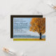 A photo of a maple tree in the crisp fall autumn season, it's leaves turning yellow, orange and brown. It's leaves are starting to fall to the green grass below. The background shows a soft mountain scene silhouette with cloudy sky. Personalise this invitation with your bridal shower information. The back has plenty of room for registry information. These invitations are great for fall or autumn season, rustic or maple tree theme.