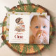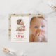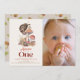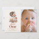 This cute 1st/first birthday photo invitation features a cream background with mushrooms, and a hedgehog in watercolor. The reverse side features a beige background with mushroom patterns. Personalise for your needs. You can find more matching products at my store.