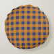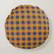 Fall Autumn Orange Blue Plaid Pattern Round Cushion