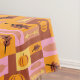 This tablecloth is the perfect accent to the friendsgiving or kids' table at Thanksgiving. But, it is not only appropriate for one event, it is perfect for the whole fall/autumn season. Warm tones of orange, brown, yellow, and pink create a cosy vibe. Fall leaves, pumpkins, arrows, and feathers enhance the warm, autumn feel.