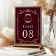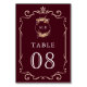 Fall Autumn Wildflower Crest Burgundy Wedding Table Number