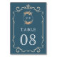Fall Autumn Wildflower Crest Dusty Blue Wedding Table Number