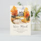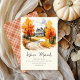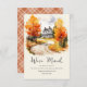 Introducing an exquisitely designed fall moving announcement card that beautifully captures the essence of joy and new beginnings. This charming card features a breathtaking watercolor illustration of a rustic house, perfectly nestled among a tapestry of vibrant autumn trees adorned with rich, fiery orange leaves.