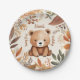 Celebrate baby's first birthday with these adorable teddy bear paper plates designed with a Fall woodland theme in boho watercolor style. Personalise them with your little one's name for custom milestone memories!