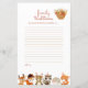 This design is part of the "Woodland Creatures Adventure" baby shower collection. It features cute stationery with watercolor woodland animal illustrations in autumn forest scenes, hand painted using fall tones like orange, terracotta, sage green and brown. The graphics include a bear, fox, racoon, rabbit and many other animals that usually live in the woods.