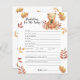 Watercolor cute teddy bear with an autumn pumpkin in its paws sits on autumn foliage.