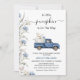 Fall Blue Floral Little Pumpkin Truck Baby Shower Invitation